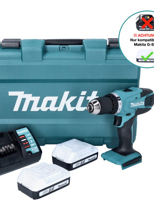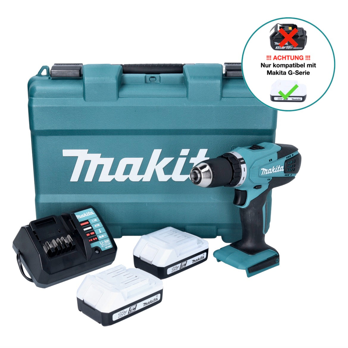 Makita DF 457 DWE Akku Bohrschrauber 18 V 42 Nm G-Serie + 2x Akku 1,5 Ah + Ladegerät + Koffer