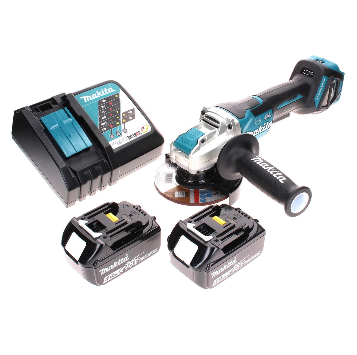 Makita DGA 519 RM Akku Winkelschleifer 18 V 125 mm Brushless X-Lock + 2x Akku 4,0 Ah + Ladegerät