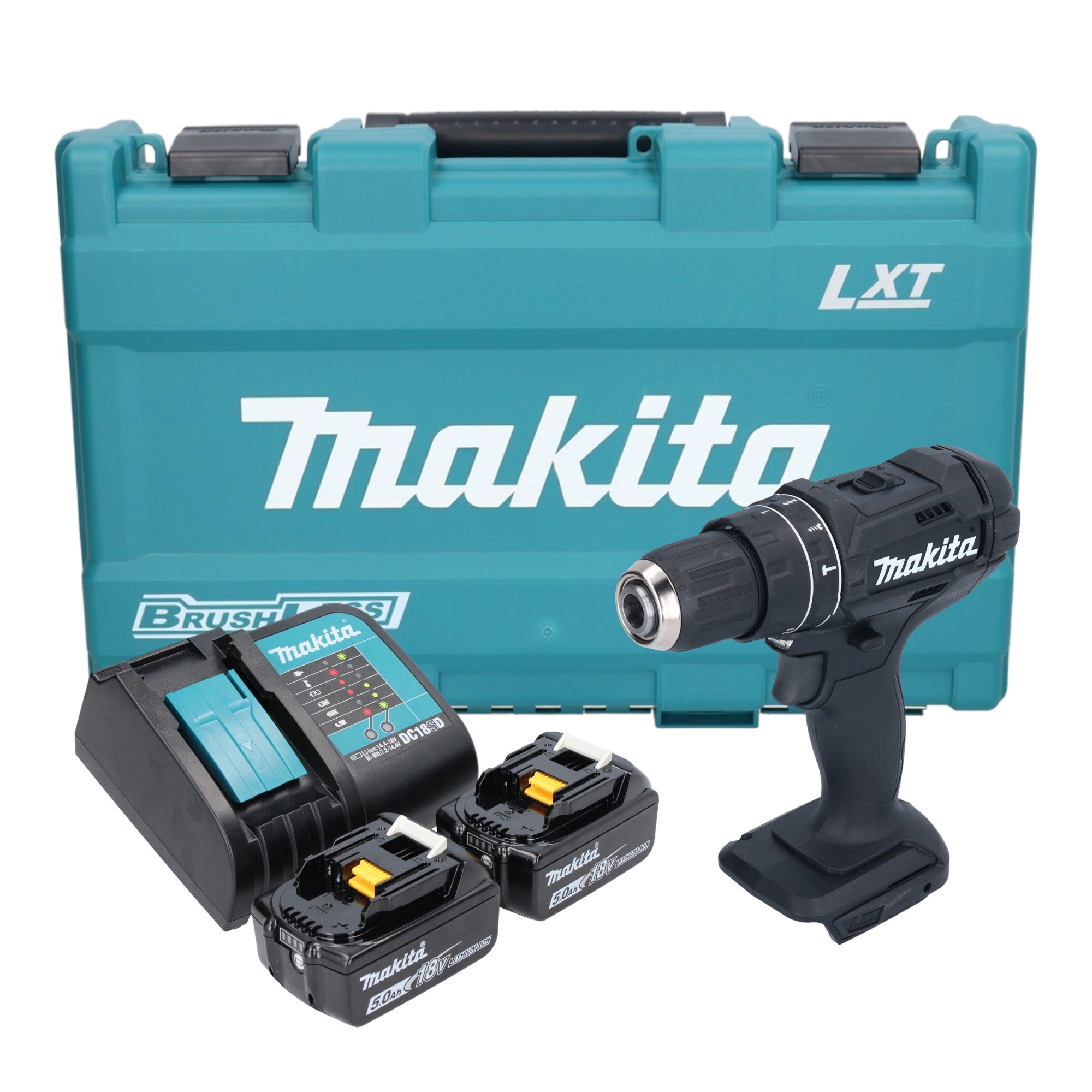 Makita DHP 482 STKB Akku Schlagbohrschrauber 18 V 62 Nm Schwarz + 2x Akku 5,0 Ah + Ladegerät + Koffer