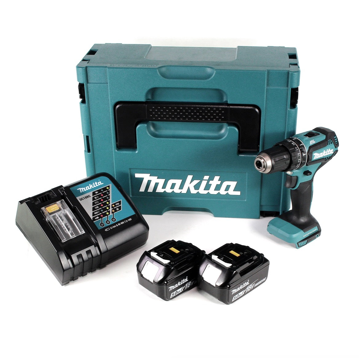 Makita DHP 485 RTJ 18 V Li-Ion Akku Schlagbohrschrauber im Makpac + 2 x 5,0 Ah Akku + Ladegerät