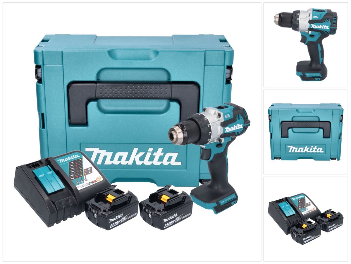 Makita DHP 489 RMJ Akku Schlagbohrschrauber 18 V 73 Nm Brushless + 2x Akku 4,0 Ah + Ladegerät + Makpac