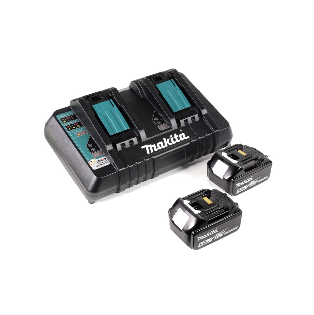 Makita DHR 280 PGJ 2 x 18 V 36 V Li-Ion Akku Bohrhammer 28 mm Brushless für SDS-PLUS im Makpac + 2 x 6,0 Ah Akku + Doppelladegerät