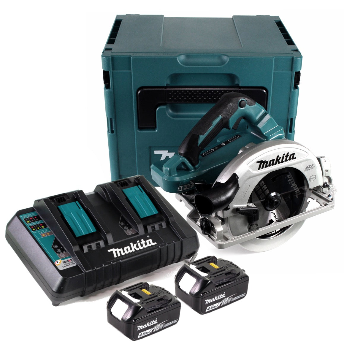 Makita DHS 782 PM2J Akku Handkreissäge 36V (2x18V) 190 mm Brushless im Makpac + 2x 4,0 Ah Akku + Doppelladegerät
