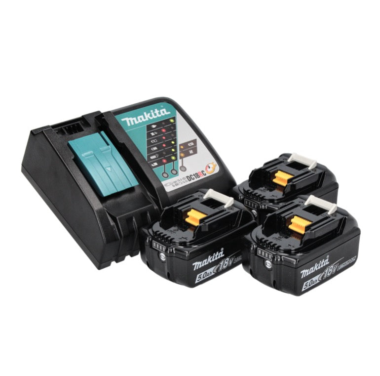 Makita DLX 2334 J Akku Kombo Kit 18 V mit DHP 485 50 Nm Brushless + DGA 504 125 mm Brushless + 3x Akku 3,0 Ah + Ladegerät + Makpac