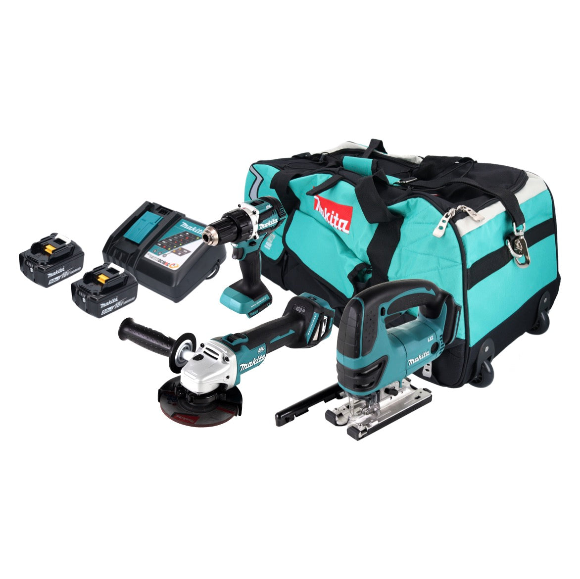 Makita DLX 3152 TX1 Akku Kombo Kit 18 V DDF 484 + DGA 511 + DJV 180 + 2x Akku 5,0 Ah + Ladegerät + Tasche