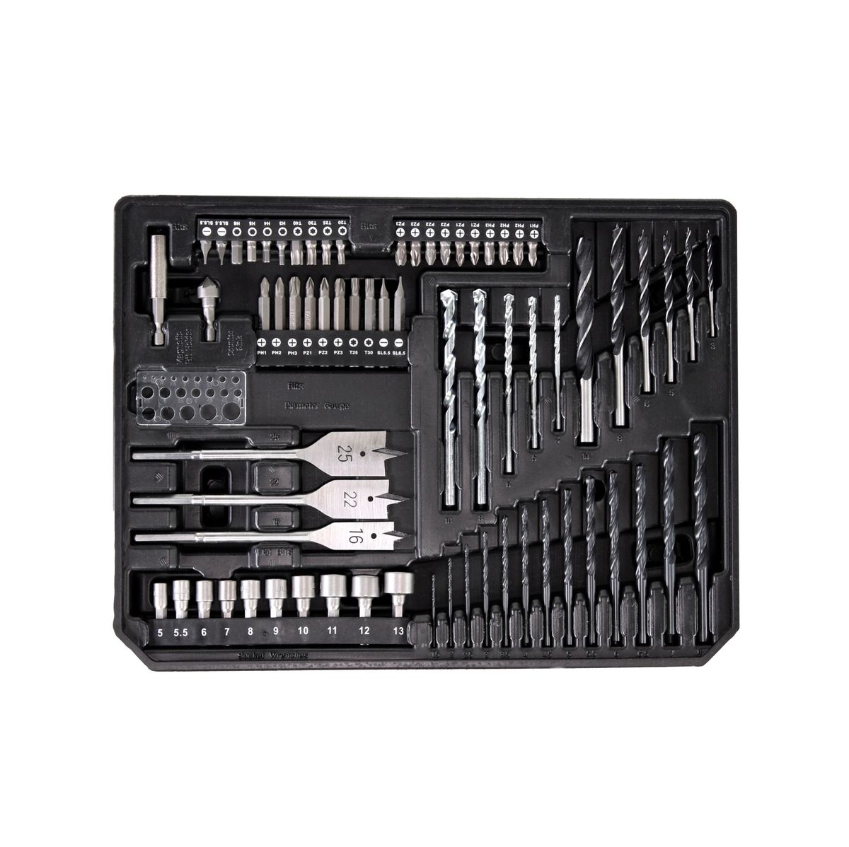 - 20x Bit 25 mm ( PH1 / PH2 / PZ1 / PZ2 / PZ3 / PZ3 / T20 / T2  / T30 / T40 / H3 / H4 / H5 / H6 / SL5,5 / SL6,5 )