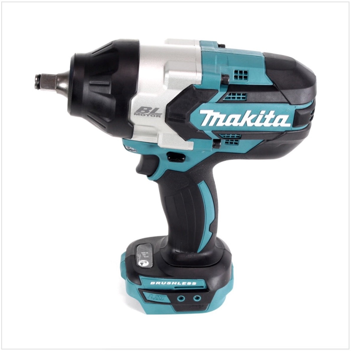 Die DTW 1002 von Makita ist ein 18 Volt starker, akkubetriebener Schlagschrauber mit 1050 Nm Drehmoment in 3-Stufen regulierbarer Dreh- und Schlagzahl. Der bürstenlose Motor sorgt für mehr Ausdauer, eine längere Lebensdauer und ein kompakteres Gehäuse, um trotzdem die volle Kraft der Maschine effektiv Nutzen zu können. Der Schlagschrauber überzeugt durch feine technische Details, wie zum Beispiel die elektronische Motorbremse um die Handgelenke zu schonen, oder die integrierte Doppel-LED-Leuchte, zum Ausleuchten des Arbeitsplatzes. Dieses Nachfolgemodell der DTW 450 ist ein echtes Kraftpaket. Im Gegensatz zu der DTW 1001 besitzt dieses Modell eine Werkzeugaufnahme von 1/2".