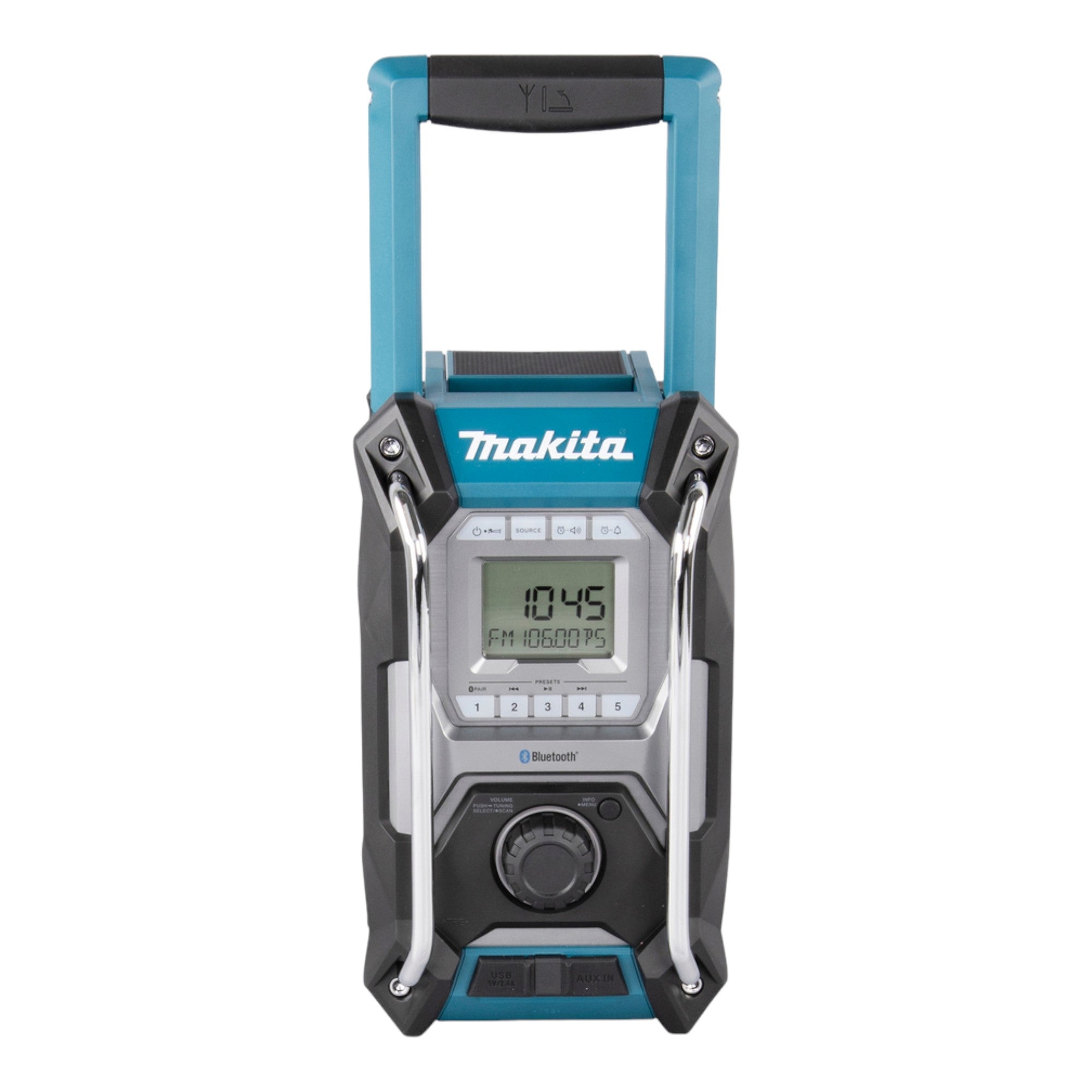 Das Makita MR 002 G Akku-Radio ist ein vielseitiges Gerät, das mit CXT, LXT, XGT Akkus oder dem mitgelieferten Netzteil betrieben werden kann. Mit einem BL4040 Akku bietet es eine beeindruckende Laufzeit von bis zu 27,5 Stunden. Bitte beachten Sie, dass die Verwendung von BL4080F und BL4050F Akkus nicht empfohlen wird, da die hintere Abdeckung nicht geschlossen werden kann. Mit seinen 2 leistungsstarken Lautsprechern liefert das Radio einen satten Klang und kann Musik über Bluetooth oder den 3,5 mm AUX-In-Anschluss übertragen. Der USB-Ausgang liefert einen maximalen Ladestrom von 2,4 A. Das kompakte und leichte Design ermöglicht eine einfache Handhabung, während die IP65-Zertifizierung maximale Wetter- und Wasserbeständigkeit garantiert. Das Makita MR 002 G ist kompatibel mit CXT, LXT und XGT-Akkus und verfügt über Stoßstangen und Metallrohre, die vor Beschädigungen schützen.
