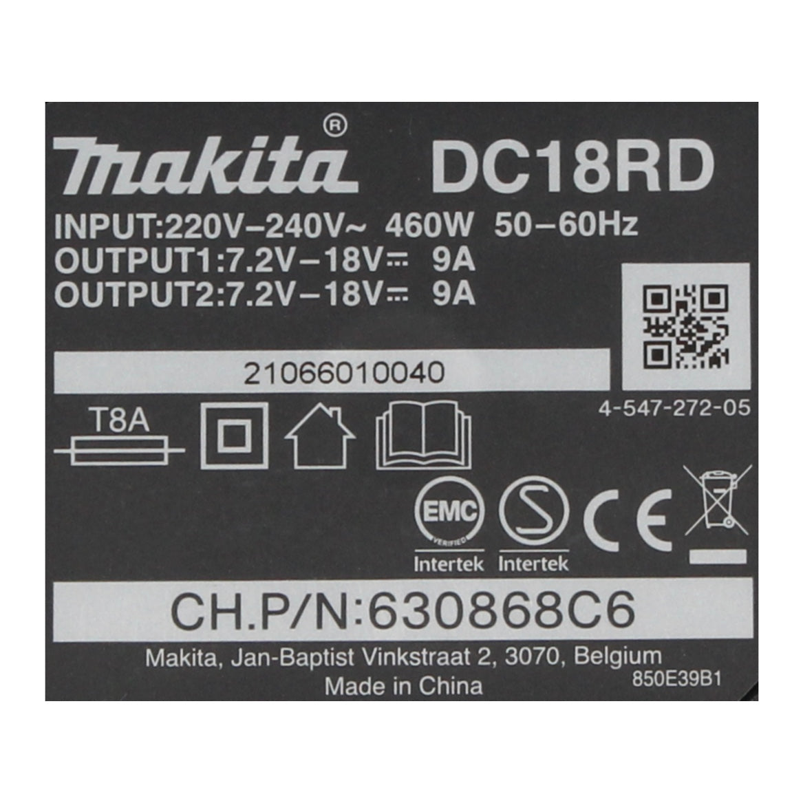 - 1x Makita DC 18 RD Doppel Schnellladegerät 14,4 V - 18 V LXT ( 196933-6 )