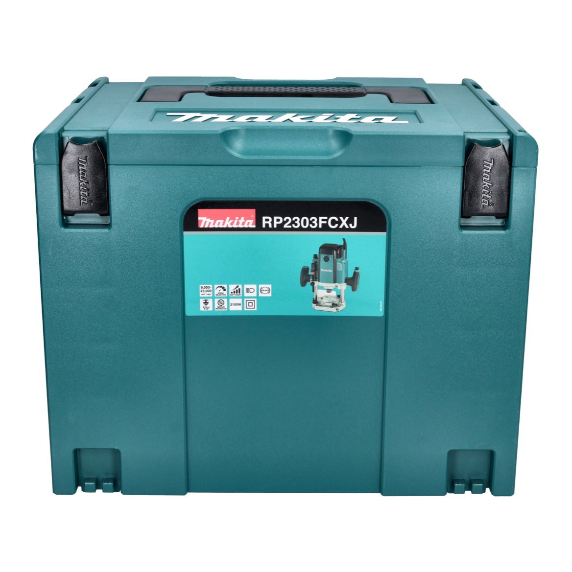 Makita RP 2303 FCXJ Oberfräse 2100 Watt 70 mm Hub + Anschlag + 6 tlg. Fräser Set + Makpac