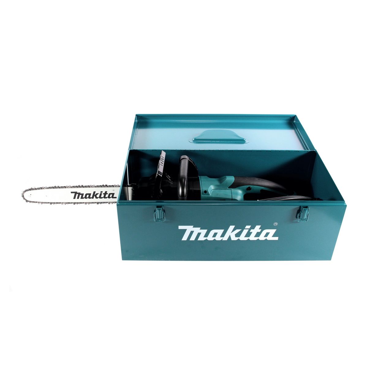 Die Makita UC 3551 A Kettensäge bietet optimale Handlichkeit und hohe Wartungsfreundlichkeit. Ein großes Sichtfenster erlaubt schnelle Kontrolle des Ölstandes, Kettenwechsel und Einstellung der Kettenspannung ist werkzeuglos möglich. Ein 200 ml großer Kettenöltank erlaubt längere Arbeitszeiten, die verbesserte Ölpumpe mit einstellbarer Fördermenge garantiert gleichmäßige Ölversorgung. Die Kohlebürsten sind extrem einfach von außen wechselbar. Der Makita Metallkoffer ist extrem robust und ein echter Hingucker. Er besitzt einen Haltegriff für den Transport und ist mit den zwei Metallschließen sicher und schnell verschließbar. Dank der kompakten Abmessung findet er in jeder Werkstatt, Garage oder im Auto den passenden Platz. Dank dem Material aus Metall ist er auch ideal für die Baustelle oder Montage geeignet und verzeiht doch ein bisschen mehr als Kunststoff. Dank dem speziellen Schlitz am Koffer kann die Säge im ganzen transportiert werden. Mit der Makita typischen Lackierung ist er zudem auch stielvoll gehalten und man sieht auf den ersten Blick wo er herkommt. Ob Kleinteile, Zubehör oder eine Elektro Kettensäge, hier findet vieles Platz. Makita ist ein führender Hersteller von Elektrowerkzeugen, die hohe Verarbeitungsqualität zeichnen den Hersteller aus.