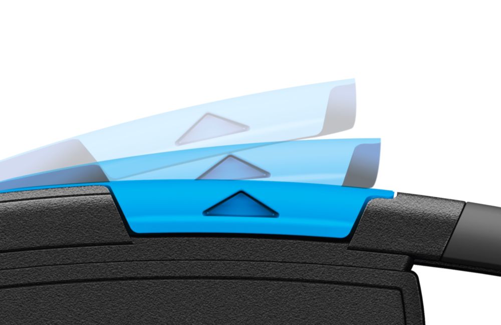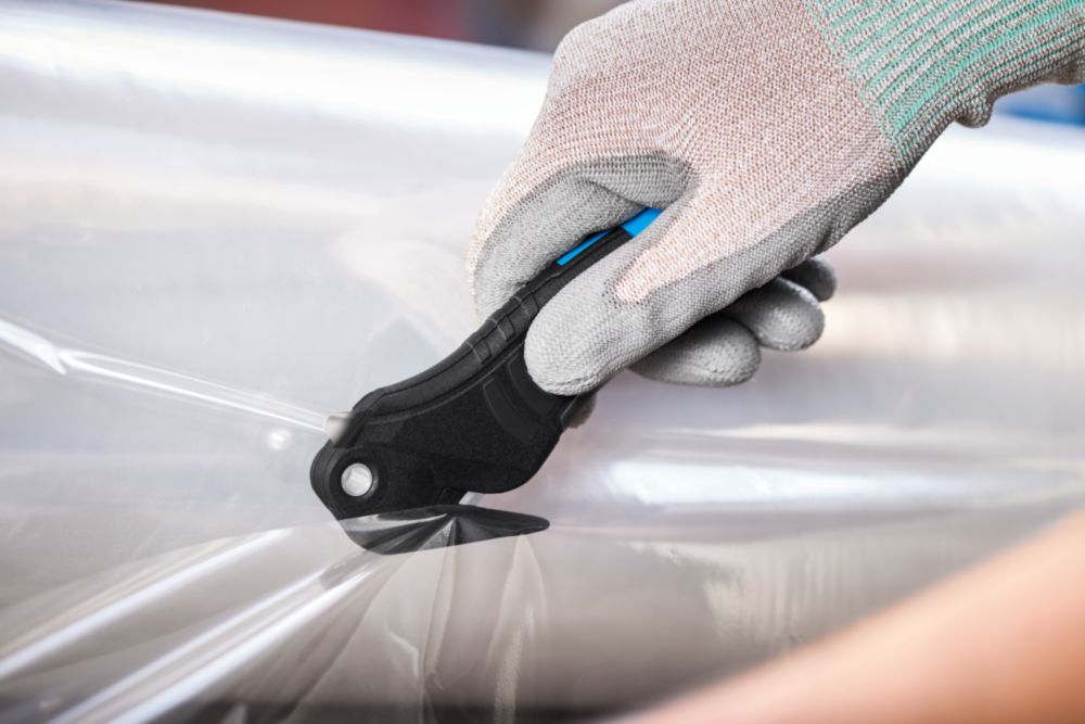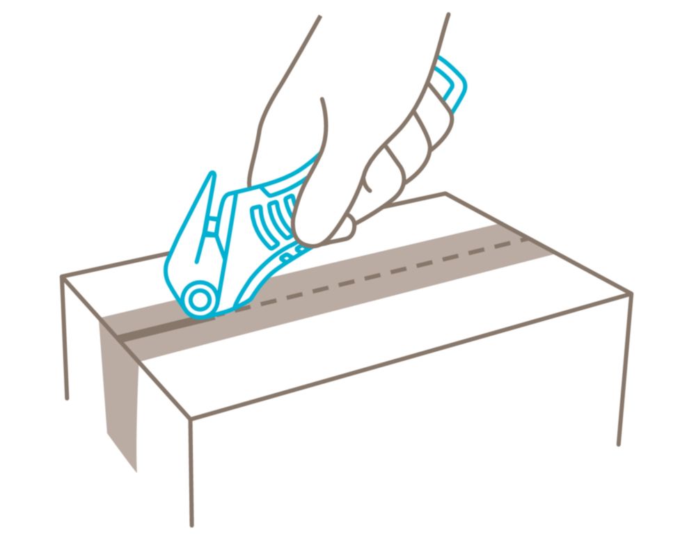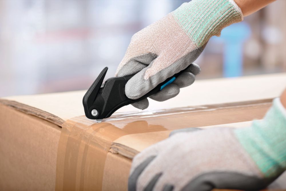 Spezialist für Folie und Umreifungen · aus glasfaserverstärktem Kunststoff · verdeckt liegende Klinge für höchste Arbeitssicherheit und maximalen Warenschutz · neues Design und eine deutlich verbesserte Ergonomie inkl. Soft-Grip · neue 4-fach nutzbare Qualitätsklinge · wendbarer Klebebandritzer mit zwei Ritztiefen (5 mm/3,5 mm) · vereinfachter und besonders sicherer Klingenwechsel ohne Werkzeug · für Rechts- und Linkshänder