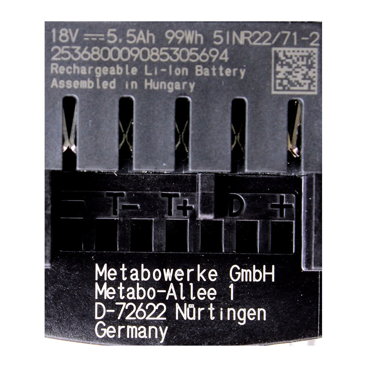 Metabo Akku Basis Set 18V mit 2x Akku LiHD 5,5Ah + Ladegerät ASC145 + Einlage ( 685122000 )