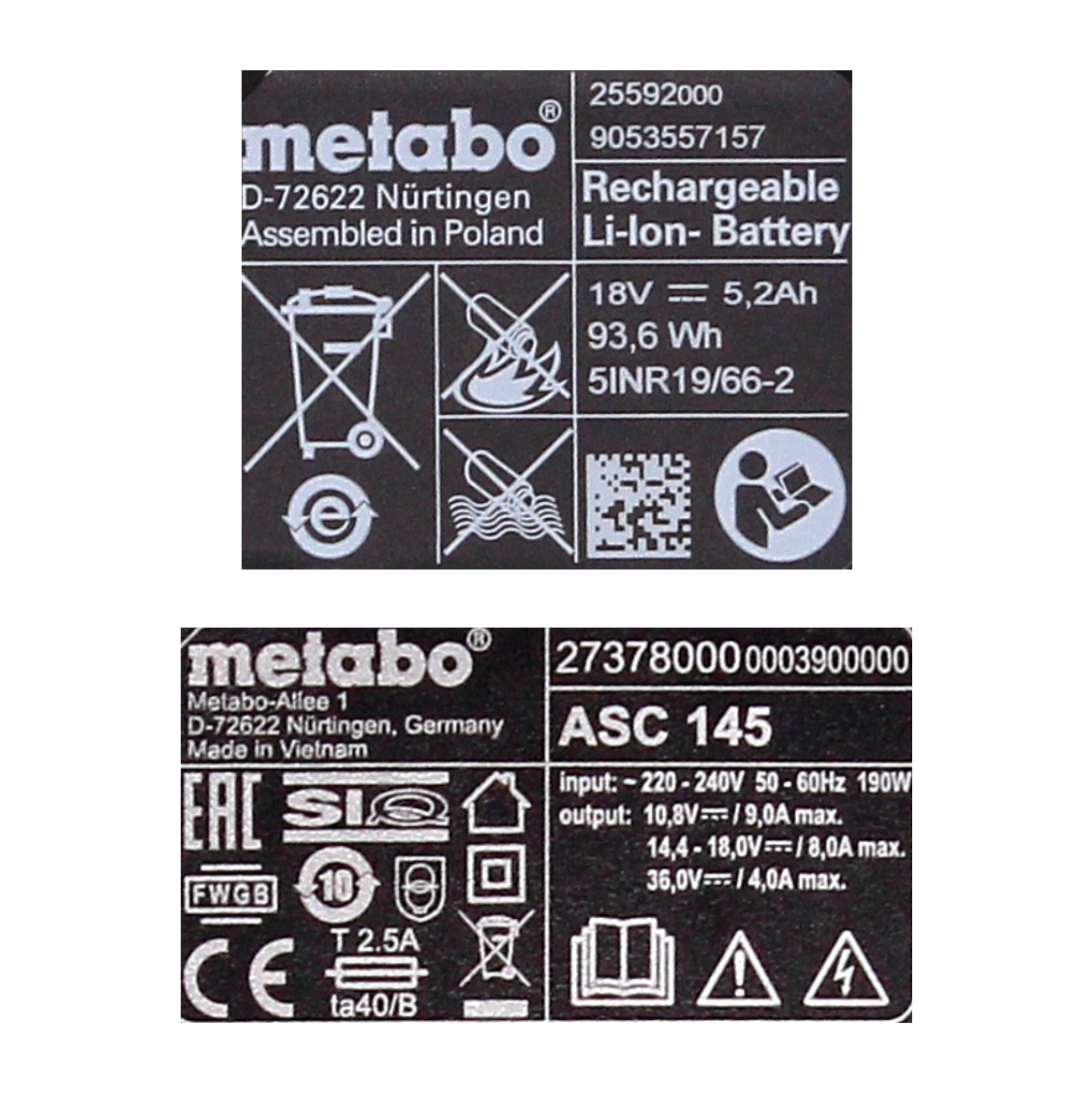 Metabo Akku Basis Set 18V mit 3x Akku 5,2Ah + Ladegerät ASC 145 ( 685048000 )