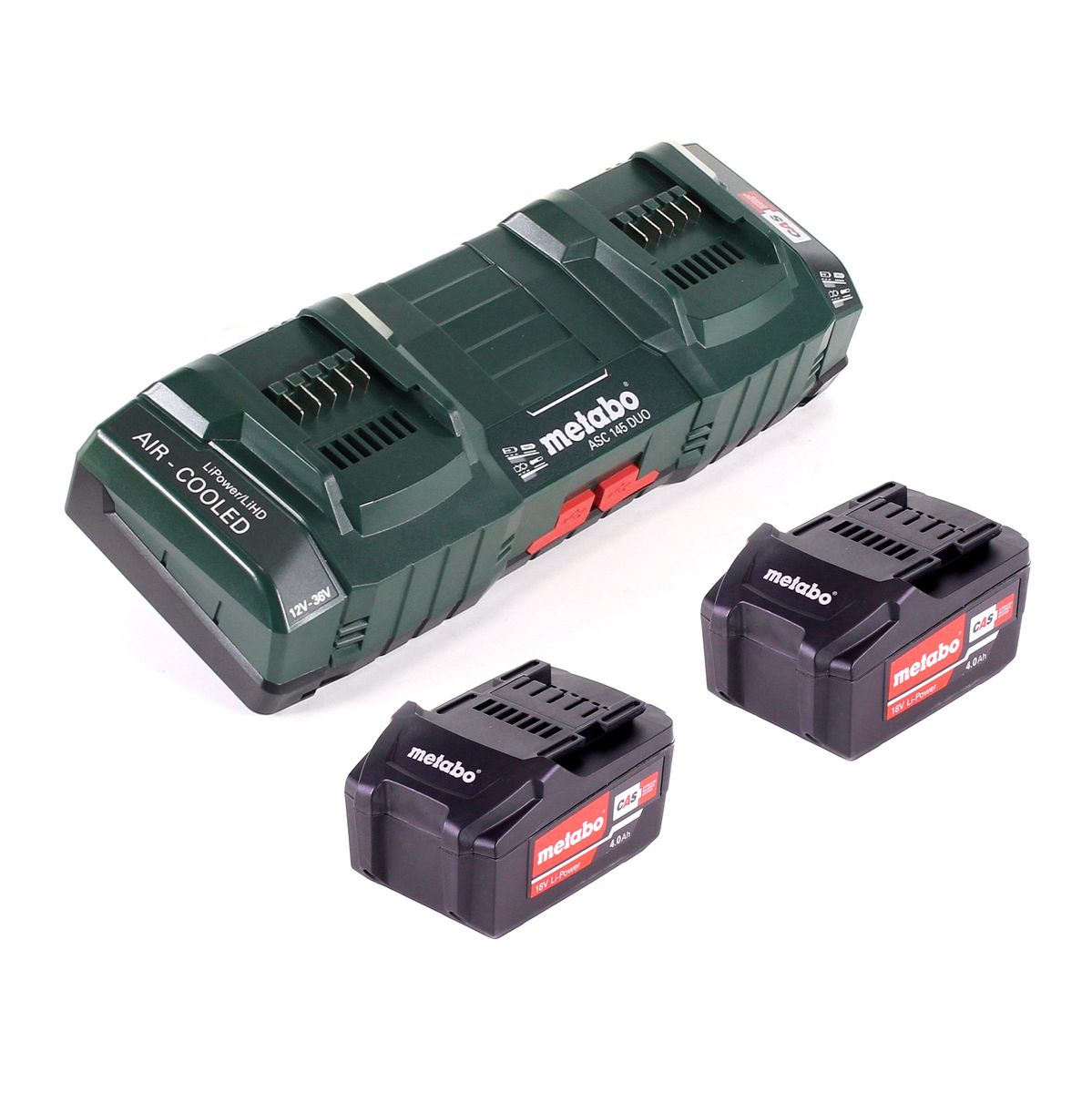 Metabo Basis Set 2x Li-Power Akkupack 18 V 4,0 Ah CAS Li-Ion Akku ( 2x 625591000 ) + Doppelladegerät ASC 145 DUO ( 627495000 )