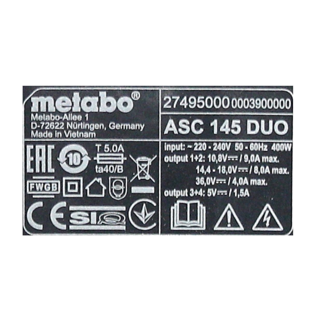 - 1x Metabo ASC 145 DUO Doppel Ladegerät ( 627495000 )
