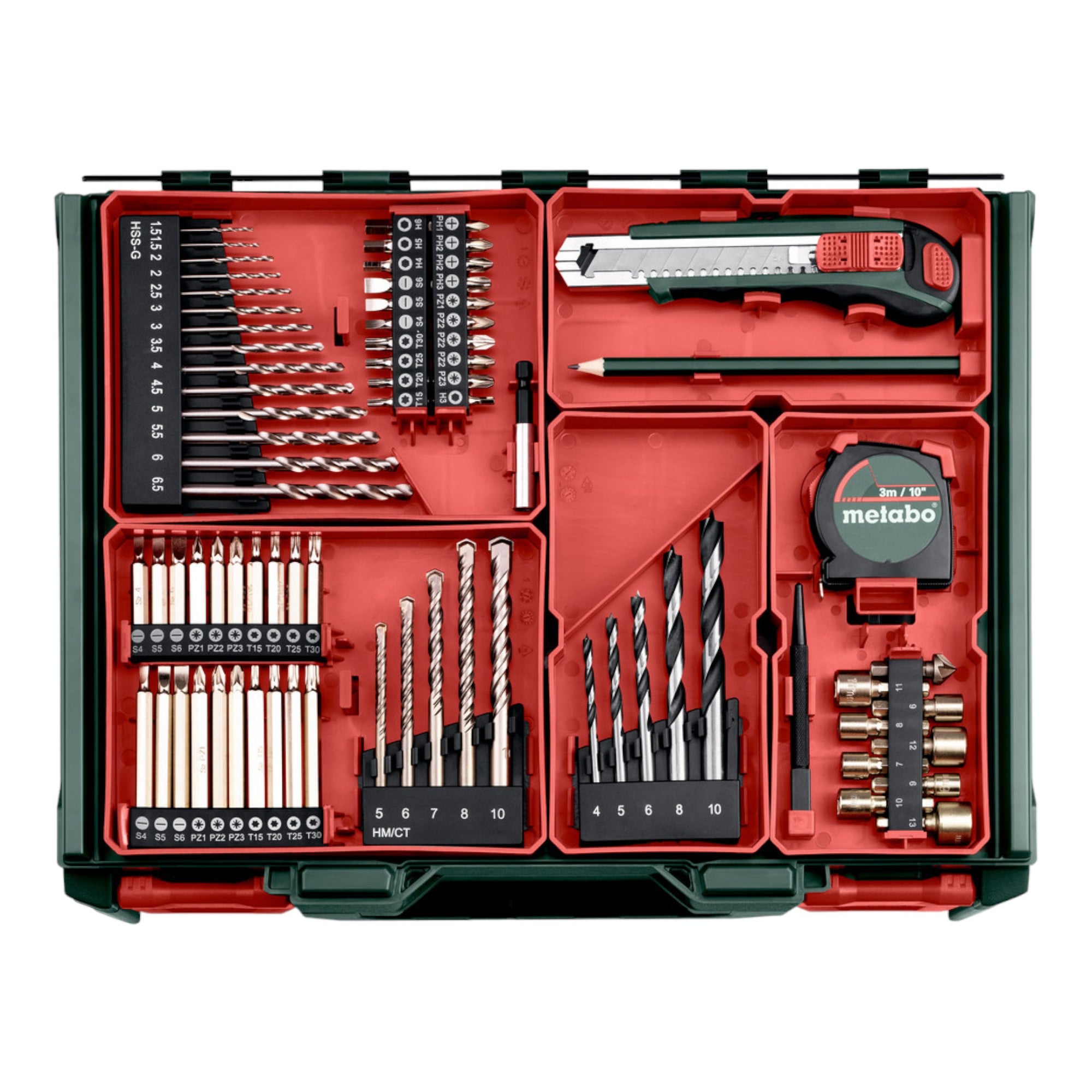 Metabo SB 18 L Set Akku Schlagbohrschrauber 18 V 50 Nm ( 602317710 ) + 2x Akku 2,0 Ah + Ladegerät + 78 tlg. mobile Werkstatt + Koffer