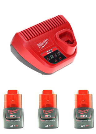 Milwaukee Akku Starter Set 12 V mit 3x Akku 2,0 Ah + M12 C12C Ladegerät