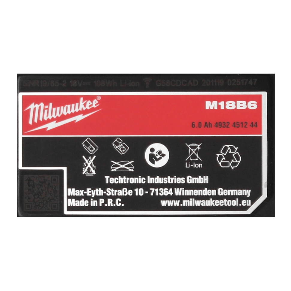 Milwaukee M18 B6 Akku 18 V 6,0 Ah / 6000 mAh ( 4932451244 )