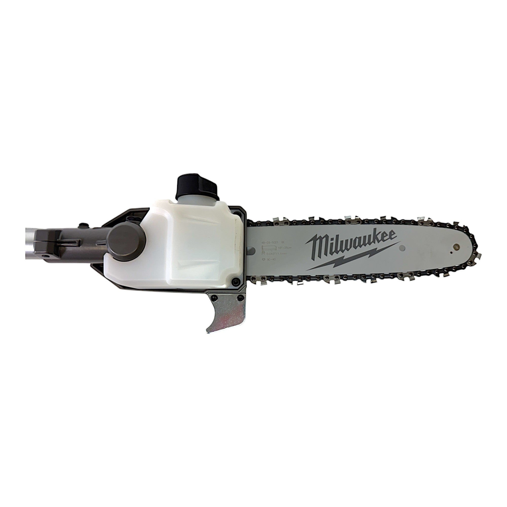 Der Milwaukee M18 FOPH-CSA Hochentaster Aufsatz ist die ideale Ergänzung für das M18 FUEL™ Outdoor Power Head QUIK-LOK™ System und bietet maximale Flexibilität für professionelle Baumpflege und Gartenarbeiten. Perfekt geeignet für das Überkopfschneiden von Ästen, ermöglicht er eine effiziente und sichere Baumpflege ohne Leiter. Ausgestattet mit einem 254 mm Schwert und einer automatischen Kettenschmierung, sorgt der Hochentaster für präzise und reibungslose Schnitte. Der seitliche Zugang zum Kettenspanner erleichtert die Kettenjustierung, sodass Wartung und Nachspannung schnell erledigt sind. Zudem verfügt das Gerät über einen integrierten Haken, der das Herunterziehen abgeschnittener Äste erleichtert und somit die Arbeitseffizienz steigert. Dank der leistungsstarken Milwaukee-Technologie sind mit einem M18™ 8.0 Ah Akku (nicht enthalten) bis zu 150 Schnitte möglich – ideal für den anspruchsvollen Einsatz. Wer noch mehr Reichweite benötigt, kann den Hochentaster mit dem separat erhältlichen 91 cm Verlängerungsaufsatz erweitern und so auch höher gelegene Äste problemlos erreichen. Mit robuster Bauweise, einfacher Handhabung und der bewährten Milwaukee-Qualität ist der M18 FOPH-CSA Hochentaster Aufsatz die perfekte Lösung für professionelle und private Anwender, die Wert auf Leistung, Sicherheit und Effizienz legen.