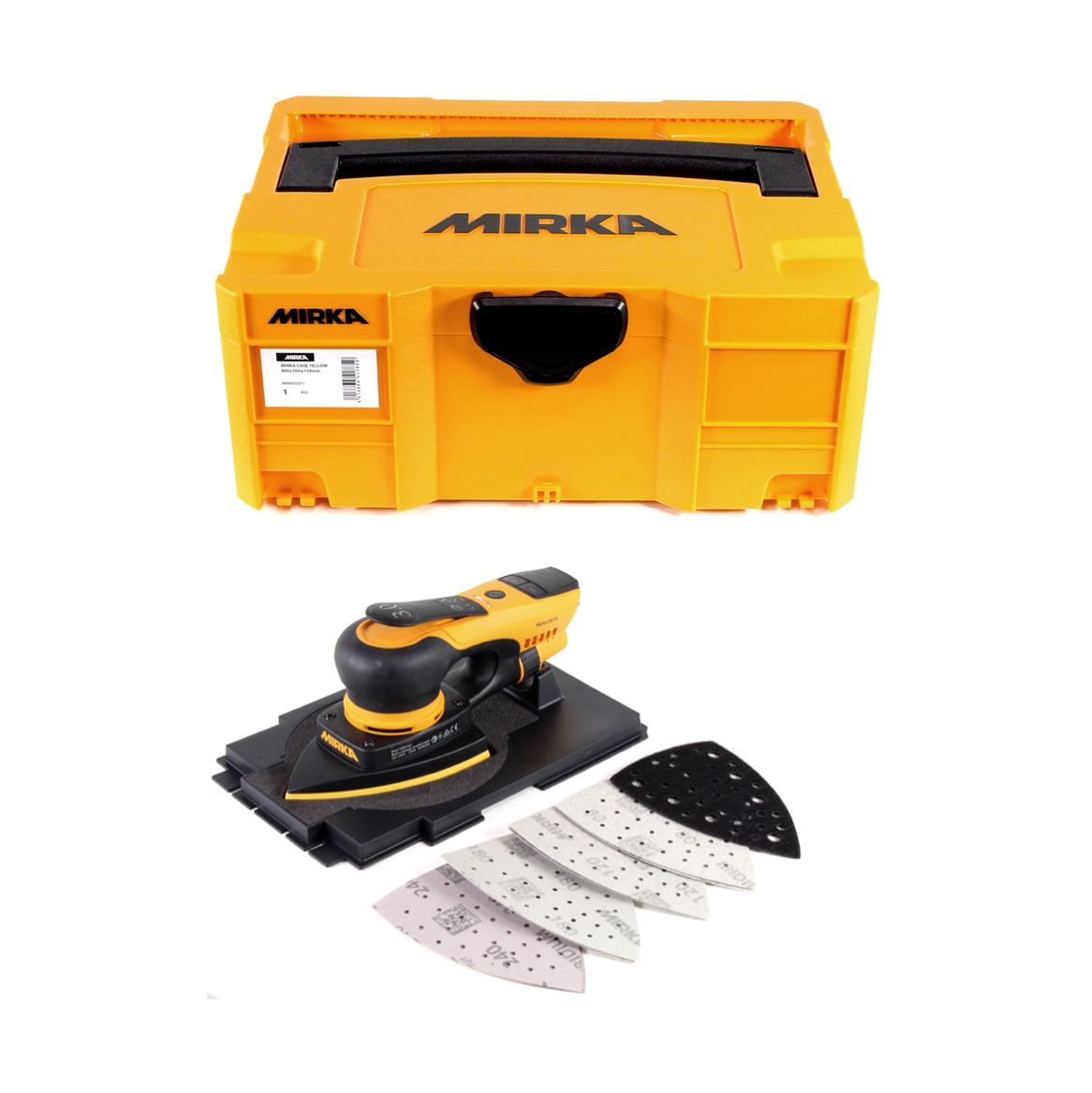 Mirka DEOS Delta-Kit Abranet DEOS 663CV Deltaschleifer 250W 100x152x152mm 3,0mm Hub + 150 Stk. Delta Schleifblätter Grip + systainer ( KIT1908WOMDE )