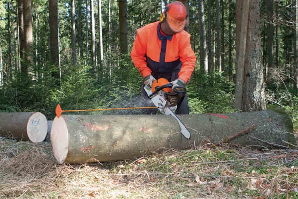 Ideal zum schnellen Ablängen von Lager- und Feuerholz · der Zapfen wird mit wenigen Handgriffen mit Hilfe des Kombischlüssels an der Schraube für die Schwertbefestigung montiert · das Ankuppeln des Ablängstabes erfolgt dann blitzschnell mit der Ein-Hand-Schnellbefestigung: Knopf drücken und KOLIBRI aufsetzen bzw. abnehmen · einfach den Teller rechts am Stammende anlegen und wie gewohnt absägen · KOLIBRI abnehmen ohne die Säge absetzen zu müssen · Einfache und schnelle Montage an der Motorsäge aller gängigen Typen!