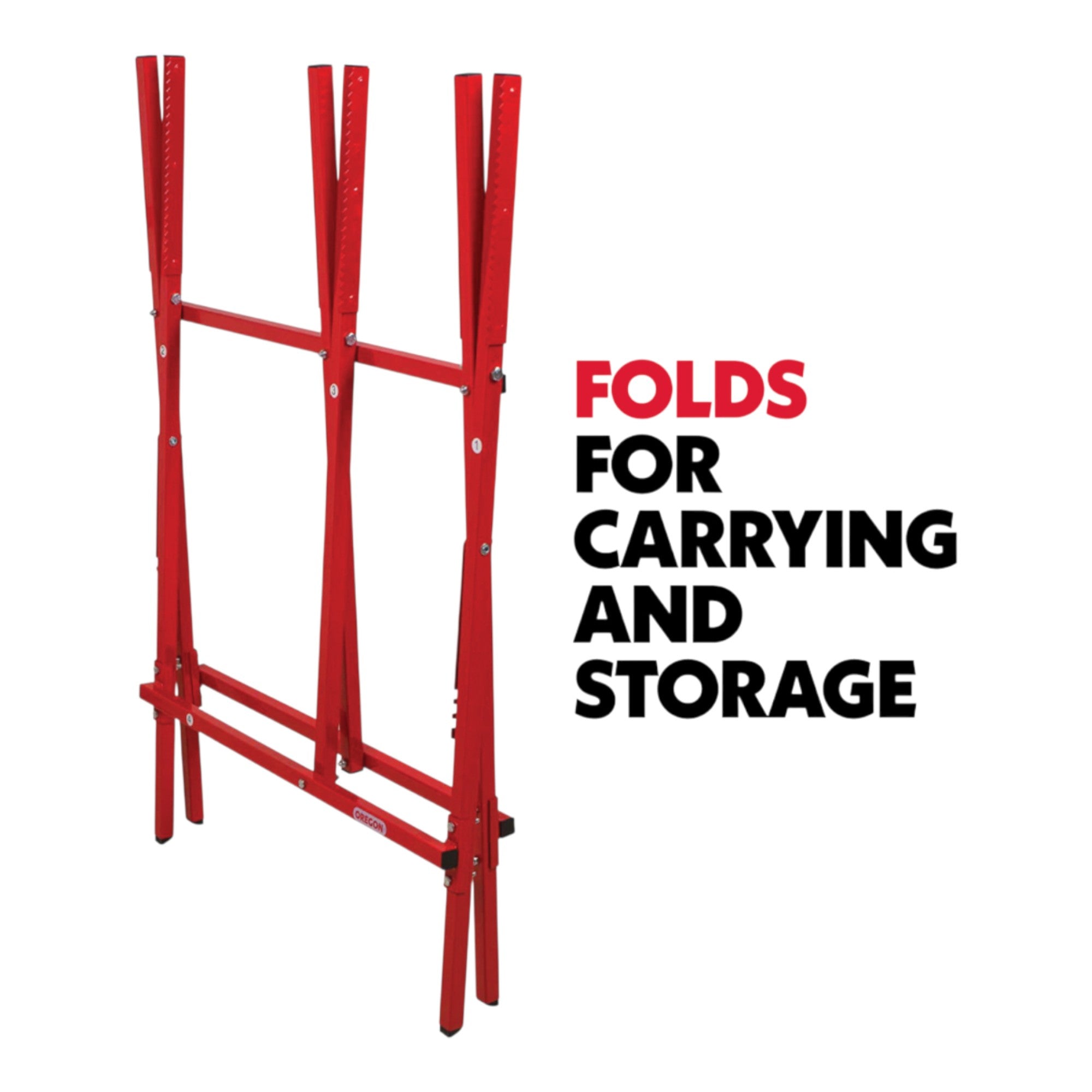 Der Oregon Sägebock ist die ideale Unterstützung für präzises und sicheres Sägen von Brenn- oder Bauholz – leicht, stabil und durchdacht konstruiert. Dank seiner verstellbaren Höhe und Breite lässt sich der Sägebock flexibel an unterschiedliche Holzgrößen und Arbeitshöhen anpassen, was für ergonomisches und effizientes Arbeiten sorgt. Integrierte Zähne greifen das Holz fest und verhindern ein Verrutschen während des Sägevorgangs, wodurch die Sicherheit und Genauigkeit erhöht werden. Besonders praktisch: Der Sägebock ist schnell montiert, lässt sich nach dem Einsatz einfach zusammenklappen und platzsparend verstauen – ideal für Werkstatt, Garten oder unterwegs.