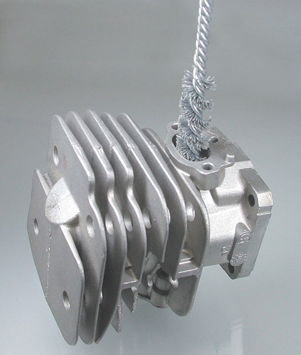 Besatzmaterial aus Siliciumcarbid · verzinkte, vierfache Drahtseele mit einfacher Besatzspirale · unentbehrliche Bürsten bei der Innenbearbeitung von NE-Metallen und Hydraulikguss · besonders geeignet zum Entgraten von Querbohrungen, Steuerteilen, O-Ring-Einstichen und zylindrischen Bohrungen an vielen Werkstücken · sowohl als Handwerkszeug als auch eingespannt in Handschleifern ergeben sich gute Arbeitsergebnisse
