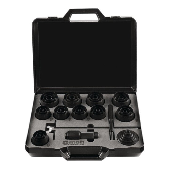 in Kunststoffkoffer mit Stahlhalter, Zentrierer sowie gehärteten Stahl-Innen- und -Außenstempeln · Dichtringe werden zentrisch gestanzt