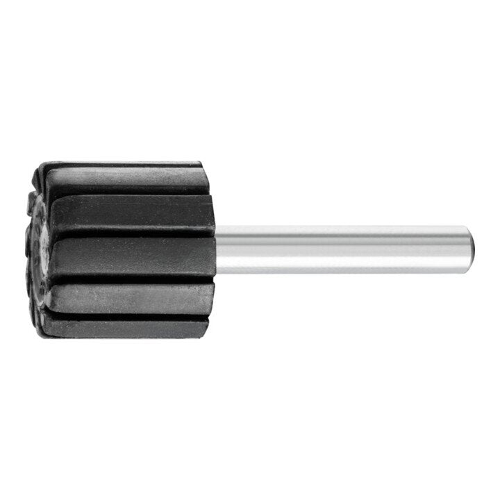 aus Gummi · Zylinderform · die Schlitze erleichtern die Ausdehnung des Körpers beim Schleifen, wodurch die Schleifhülse gespannt wird und erhöhen die Elastizität · das Band sitzt rutschfest · die Schleifhülsen lassen sich unter leichter Rechtsdrehung auf- und abziehen