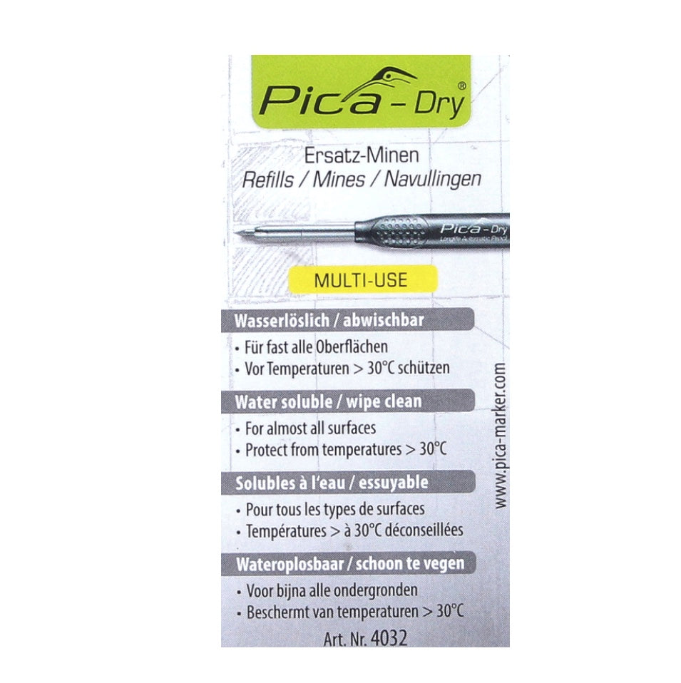 Der Pica DRY Longlife Automatic Pen ist ein professioneller Handwerker Baumarker und ist mit einer speziellen FOR ALL Graphitmine 2B ausgestattet, welche Markierungen auf fast allen Oberflächen egal ob glatt oder rau, trocken oder feucht, staubig oder ölig ermöglicht. Zusätzlich sind Ihre Markierungen auf glatten Flächen sogar wieder feucht abwischbar und der Tieflochmarker ist mit verbessertem Staub- und Nässeschutz versehen. Der praktische Köcherschoner verfügt über einen Spezial-Clip für das einhändige Arbeiten und ist mit dem patentierten, integrierten Spitzer versehen. Die hochwertige Druckmechanik sichert einen automatischen Minenvorschub im Edelstahlrohr und die Minen sind dadurch höchst einfach von hinten nachfüllbar. Der Pica DRY Automatic Pen ist extrem langlebig und nachhaltig dank hochwertiger Produkttechnik und Nachfüllbarkeit und bietet vielfältigste Einsatzmöglichkeiten dank spezieller farbiger Ersatz-Minen: für helle oder dunkle Oberflächen, sowohl in wasserlöslich oder auch in wasserfest.