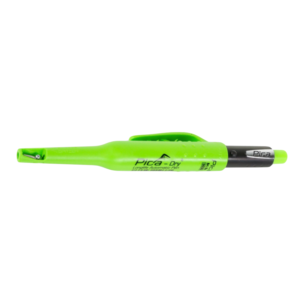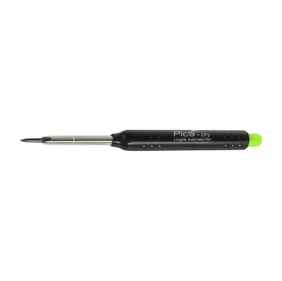 Der Pica DRY Longlife Automatic Pen ist ein professioneller Handwerker Baumarker und ist mit einer speziellen FOR ALL Graphitmine 2B ausgestattet, welche Markierungen auf fast allen Oberflächen egal ob glatt oder rau, trocken oder feucht, staubig oder ölig ermöglicht. Zusätzlich sind Ihre Markierungen auf glatten Flächen sogar wieder feucht abwischbar und der Tieflochmarker ist mit verbessertem Staub- und Nässeschutz versehen. Der praktische Köcherschoner verfügt über einen Spezial-Clip für das einhändige Arbeiten und ist mit dem patentierten, integrierten Spitzer versehen. Die hochwertige Druckmechanik sichert einen automatischen Minenvorschub im Edelstahlrohr und die Minen sind dadurch höchst einfach von hinten nachfüllbar. Der Pica DRY Automatic Pen ist extrem langlebig und nachhaltig dank hochwertiger Produkttechnik und Nachfüllbarkeit und bietet vielfältigste Einsatzmöglichkeiten dank spezieller farbiger Ersatz-Minen: für helle oder dunkle Oberflächen, sowohl in wasserlöslich oder auch in wasserfest.