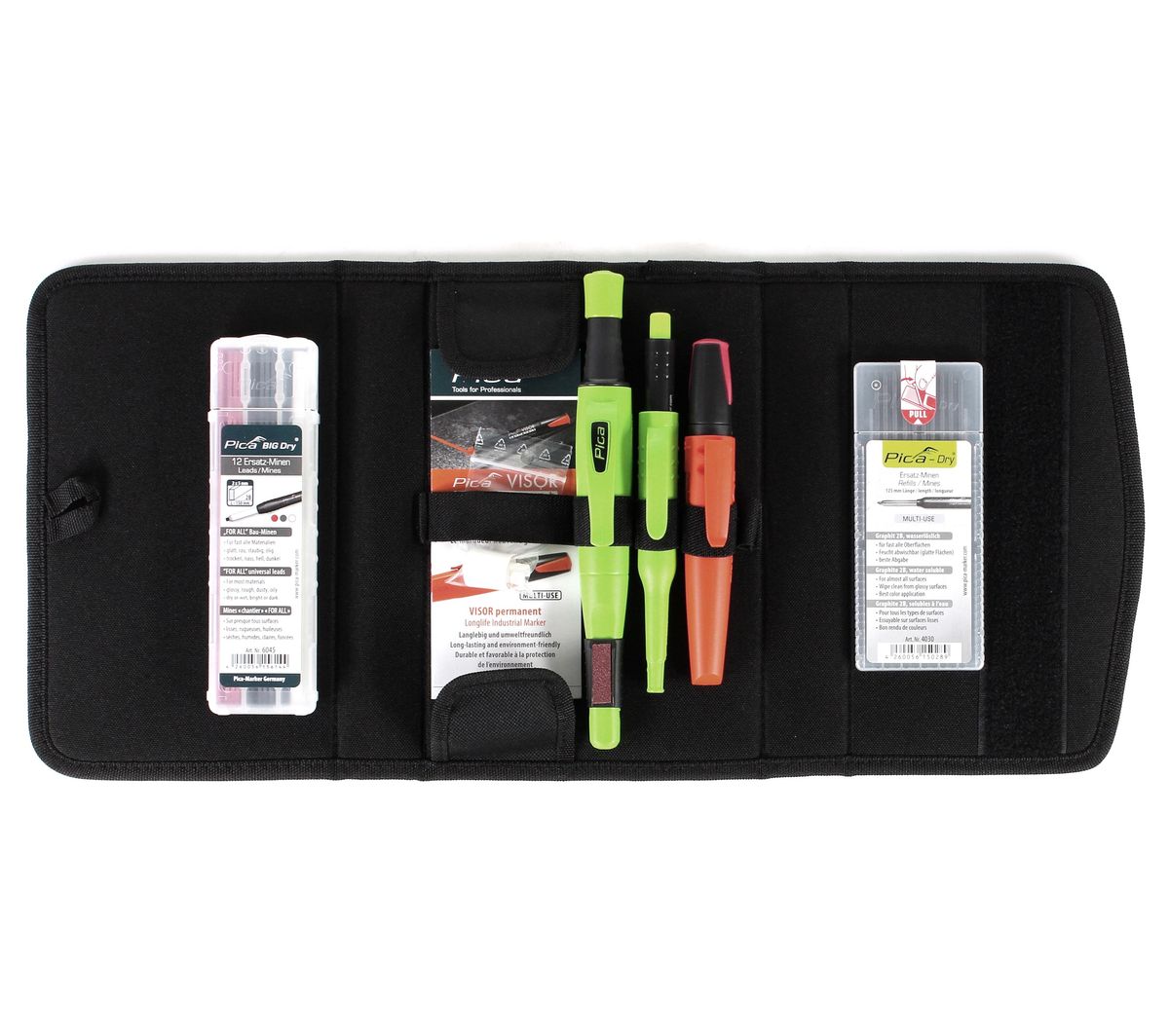 Das Pica Master Set Zimmermann ist ein praktisches und kompaktes Makier-Set. Es eignet sich auch perfekt für Zimmermänner, Dachdecker, Spengler und Maurer. Das Set zeichnet sich in Langlebigkeit und einfacher Funktionsweise aus. Das Set ist mit verschiedenen Minen für unterschiedliche Zwecke nach füllbar und somit universell einsetzbar. Die Minen sind optimal zum Anzeichnen geeignet und zeichnen sich durch eine extrem lange Markierungsleistung aus.