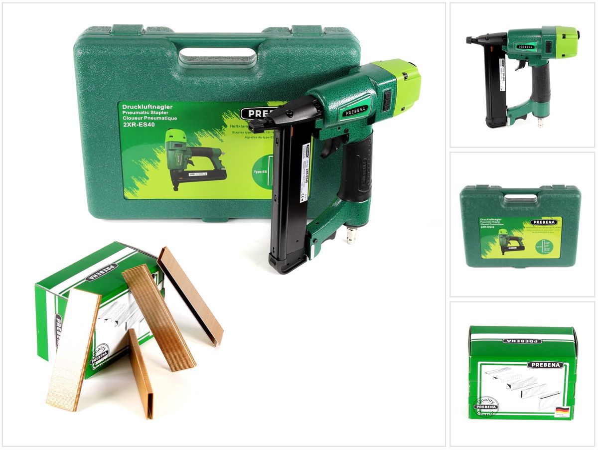 Prebena 2XR-ES40 Klammergerät Druckluft Nagler im Transportkoffer Typ ES + 5200x Prebena ES30CNKHA Heftklammern