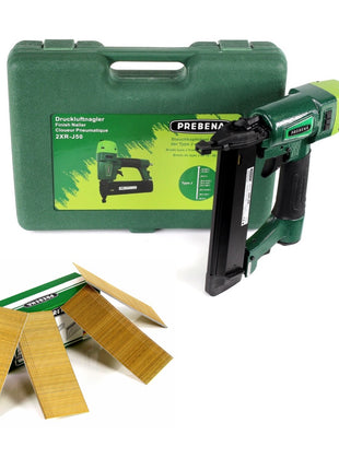 Prebena 2XR-J50 Druckluftnagler im Transportkoffer + Prebena Stauchkopfnägel Brads 50 mm 4000 Stück - aus verzinktem Stahl, geharzt