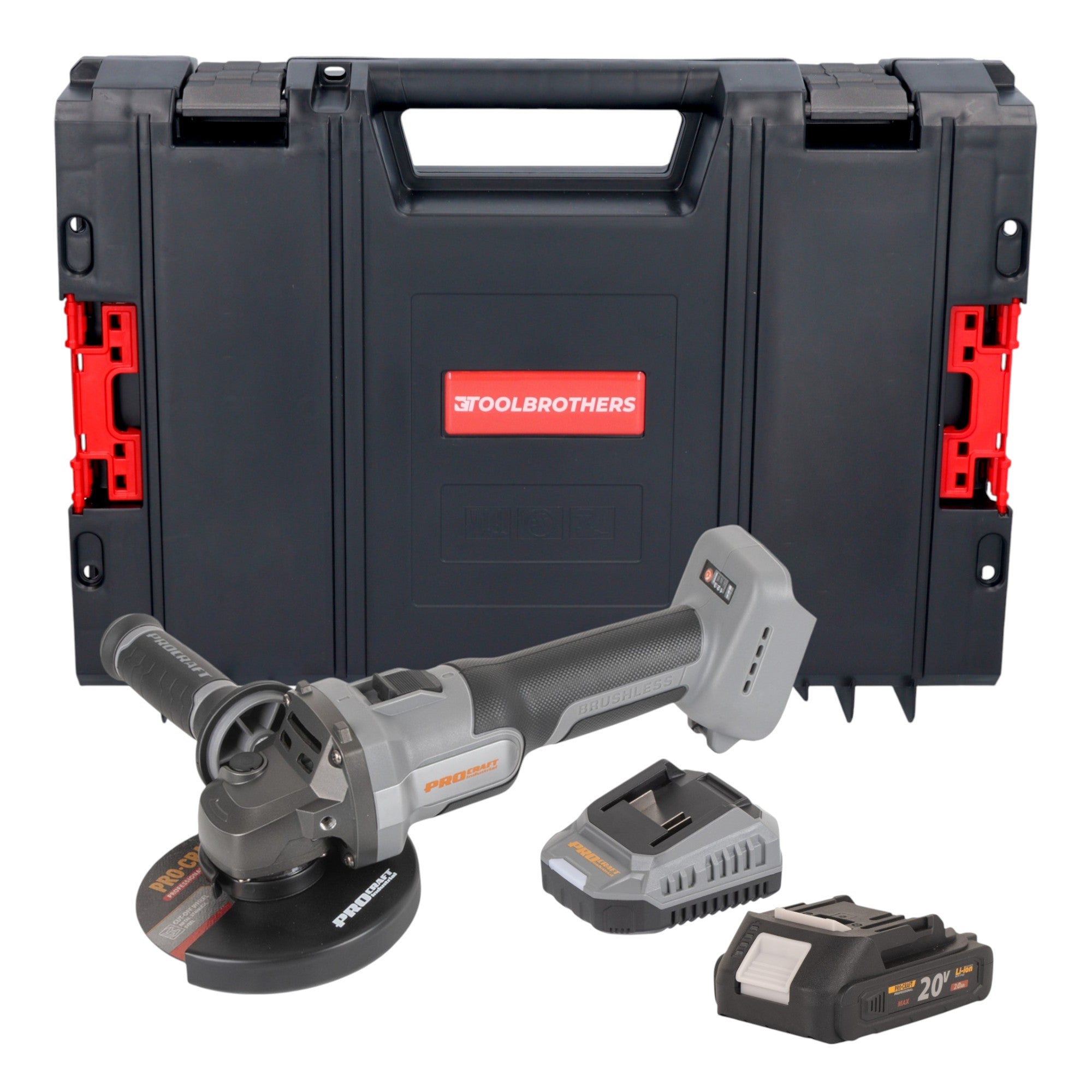 Procraft Industrial AG125Abb Akku Winkelschleifer 20 V 125 mm Brushless + 1x Akku 2,0 Ah + Ladegerät + RHINO Toolcase