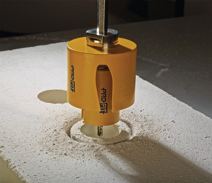 Hartmetallbestückt · für alle Holzwerkstoffe MDF, Sperrholz, Spanplatten, Weichgestein, Kalksandstein, Gipskarton, Zellbeton, Wandfliesen, Laminat, Polyester, PVC, Fieberglas und Gummi · Schnitttiefe 52 mm · Inhalt: je 1 Lochsäge Ø 68 mm je 1 Click & Drill Zentrierbohrer je 1 Click & Drill Aufnahmeschaft 10 mm Produktvorteile: · schnelles entfernen des Bohrkerns · extreme Schrägbohrungen · bestehende Lochdurchmesser vergrößern
