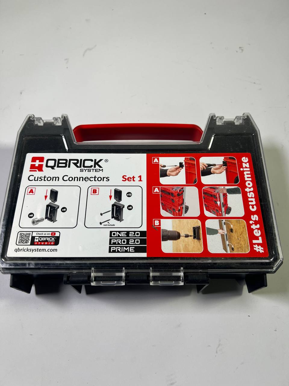 Mit dem Custom Connector Set 1 von Qbrick System lassen sich eure Werkzeugkoffer nach belieben modifizieren! Einfach die Connector-Buchsen an der Werkzeugbox anbringen und das Gegenstück am gewünschten Gegenstand befestigen. Der Organisierung eurer Werkzeuge sind keine Grenzen gesetzt!