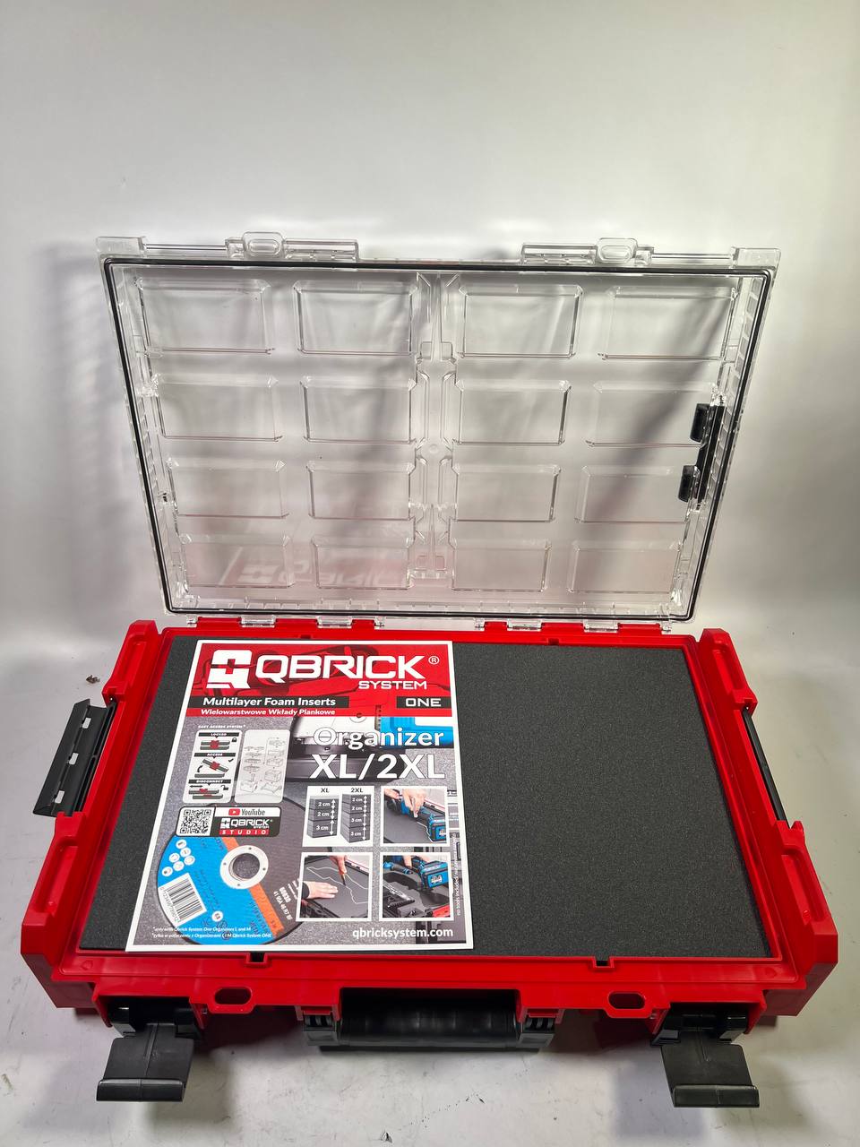 RED ULTRA HD ist eine Sonderedition von Qbrick System ONE-Produkten aus ultrabeständigem Kunststoff, der sich durch außergewöhnliche Beständigkeit gegen mechanische Beschädigungen auszeichnet. Die durchgeführten Schlagtests bestätigen seine außergewöhnliche Haltbarkeit, auch bei Bedingungen unter 0 °C. Qbrick System ONE Organizer XL Multilayer Foam Inserts ist einer der größten Organizer aus der ONE-Linie. System XL Organiser sind untereinander, aber auch mit allen anderen Modulen aus der ONE-Linie kombinierbar. Die in die Polycarbonatabdeckung eingebaute Dichtung bietet vollen Schutz gegen das Eindringen von Wasser und Staub. Die Version 2.0 der ONE-Produktlinie ist eine neue Generation von Werkzeugkästen und Organizern mit einem verstärkten Design. Durch die zusätzliche Anpassung der Gehäuse an M8-Gewindeeinsätze kann das System an die Bedürfnisse des Anwenders angepasst werden. Die Custom-Version dieses Kastenmodells ist mit vier M8-Gewindeeinsätzen ausgestattet, die eine individuelle Anpassung durch den Benutzer ermöglichen. Die MFI-Version ist mit mehrschichtigen Schaumstoffeinlagen ausgestattet, die nach dem Schneiden entsprechender Löcher Handwerkzeuge und Elektrowerkzeuge perfekt schützen.