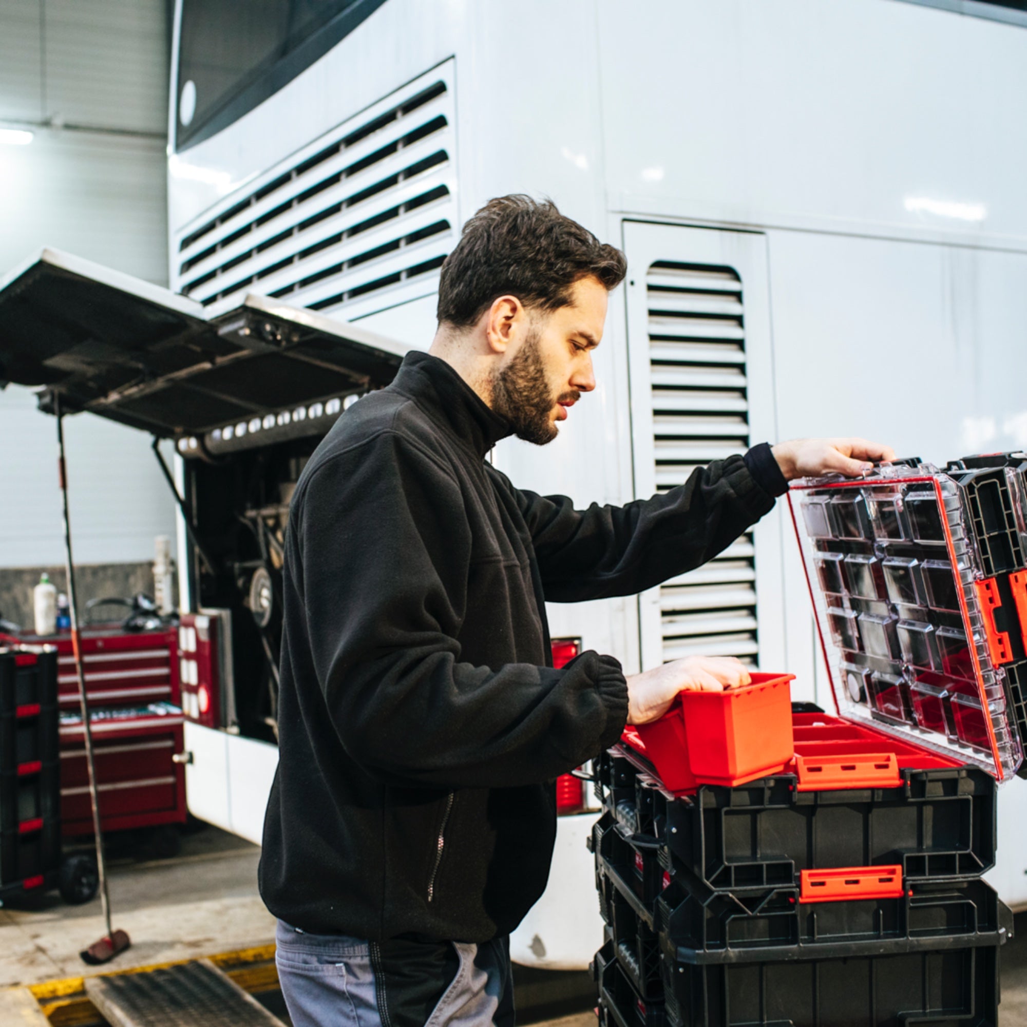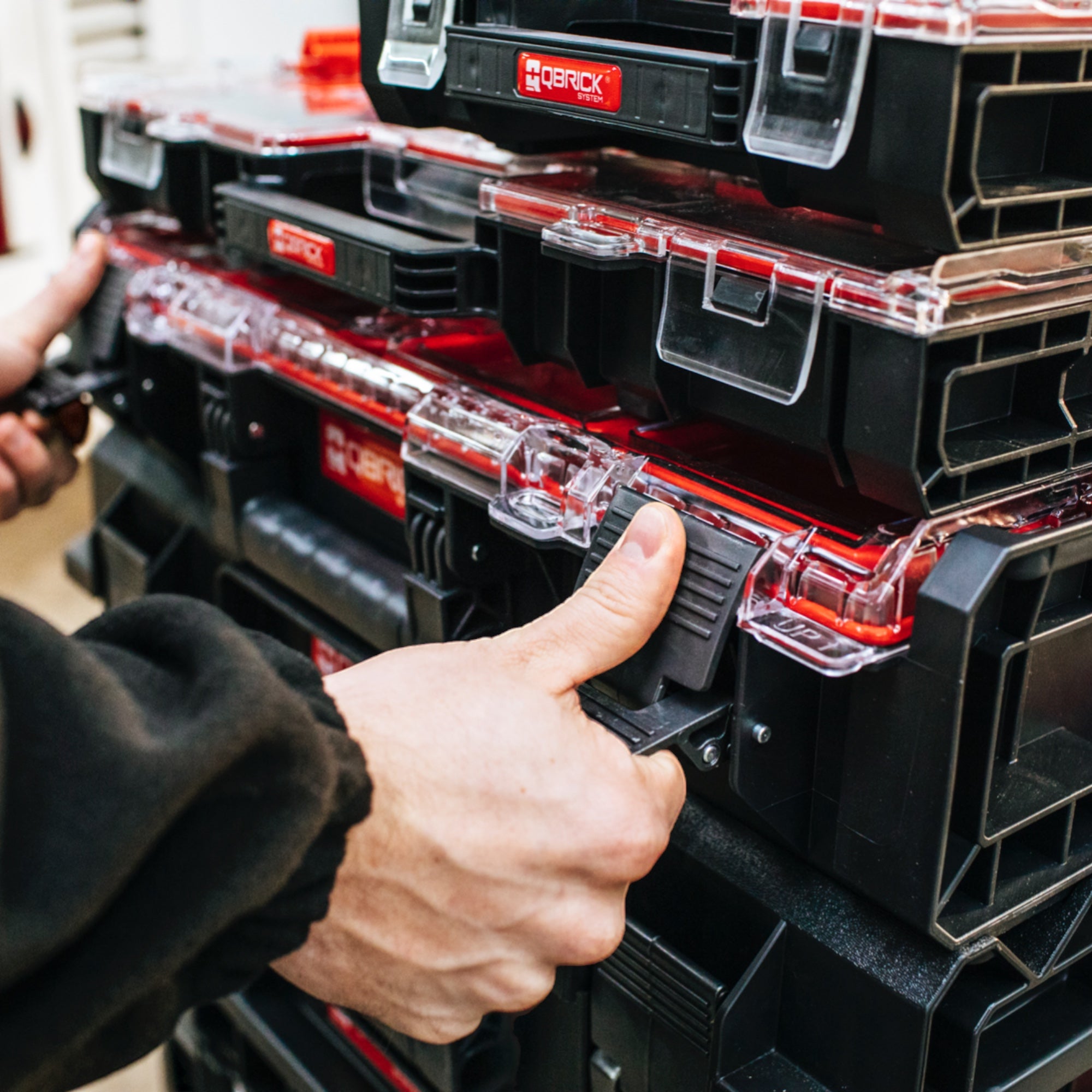 Qbrick System ONE Organizer XL ist das größte Modell in der Familie modularer Organizer, die untereinander, aber auch mit allen Kommoden der ONE-Linie kombiniert werden können. Der XL-Organizer ist mit neuen, zwei langen Eimern ausgestattet, die jeweils über 30 cm messen. Außerdem enthält der Organizer 2 mittlere und 4 kleine Eimer. Die Version 2.0 der ONE-Produktlinie ist eine neue Generation von Werkzeugkästen und Organizern mit einem verstärkten Design. Durch die zusätzliche Anpassung der Gehäuse an M8-Gewindeeinsätze kann das System an die Bedürfnisse des Anwenders angepasst werden.