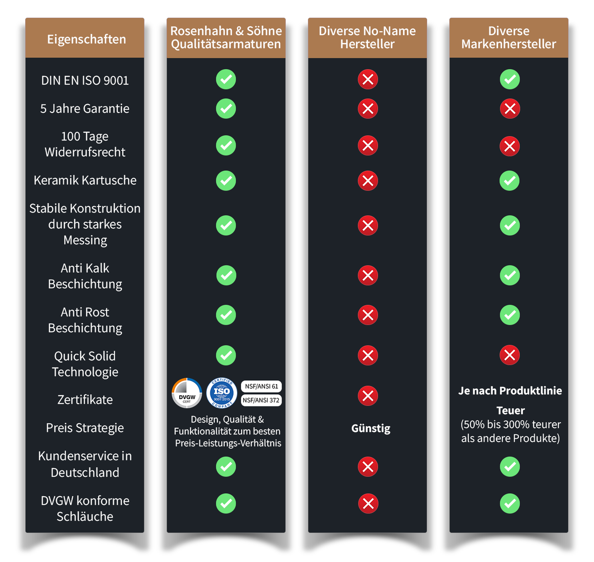 Die Küchenarmatur Juist 100 von Rosenhahn & Söhne vereint Langlebigkeit und modernes Design. Mithilfe des drehbaren Schwenkbereichs kann jede Stelle mühelos innerhalb und außerhalb der Spüle erreicht werden. Zudem wird die Benutzung von jeder Seite ermöglicht und kann für mehr Platz ganz einfach weggedreht werden! Das edle Design in chrom und die hochwertige Verarbeitung aus Messing, machen unsere Spültischarmatur zu einem echten Hingucker. Die Chromlegierung schützt zudem vor Kalkresten und Rost. Eine ausführliche und veranschauliche Bedienungsanleitung hilft Ihnen beim problemlosen Einbau.