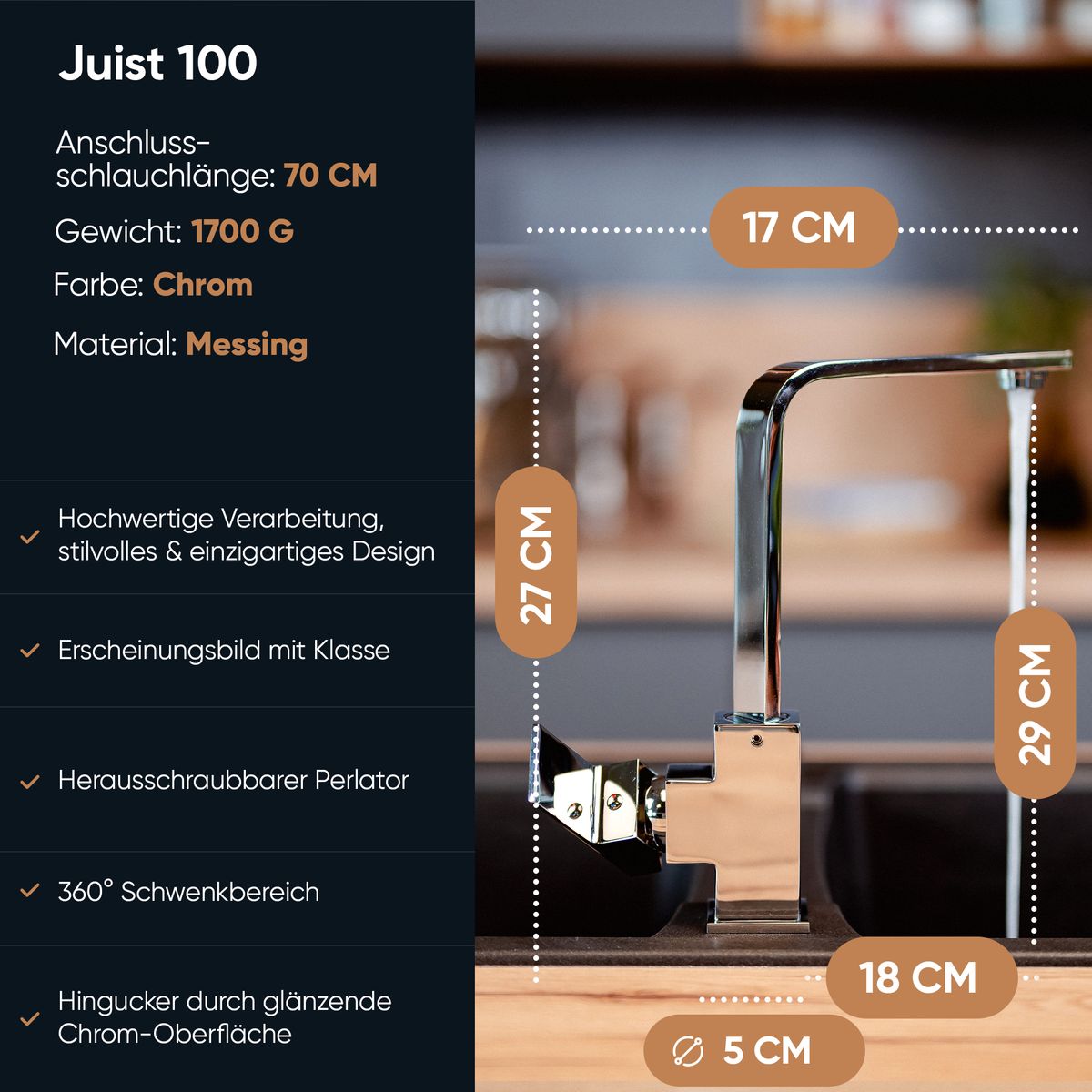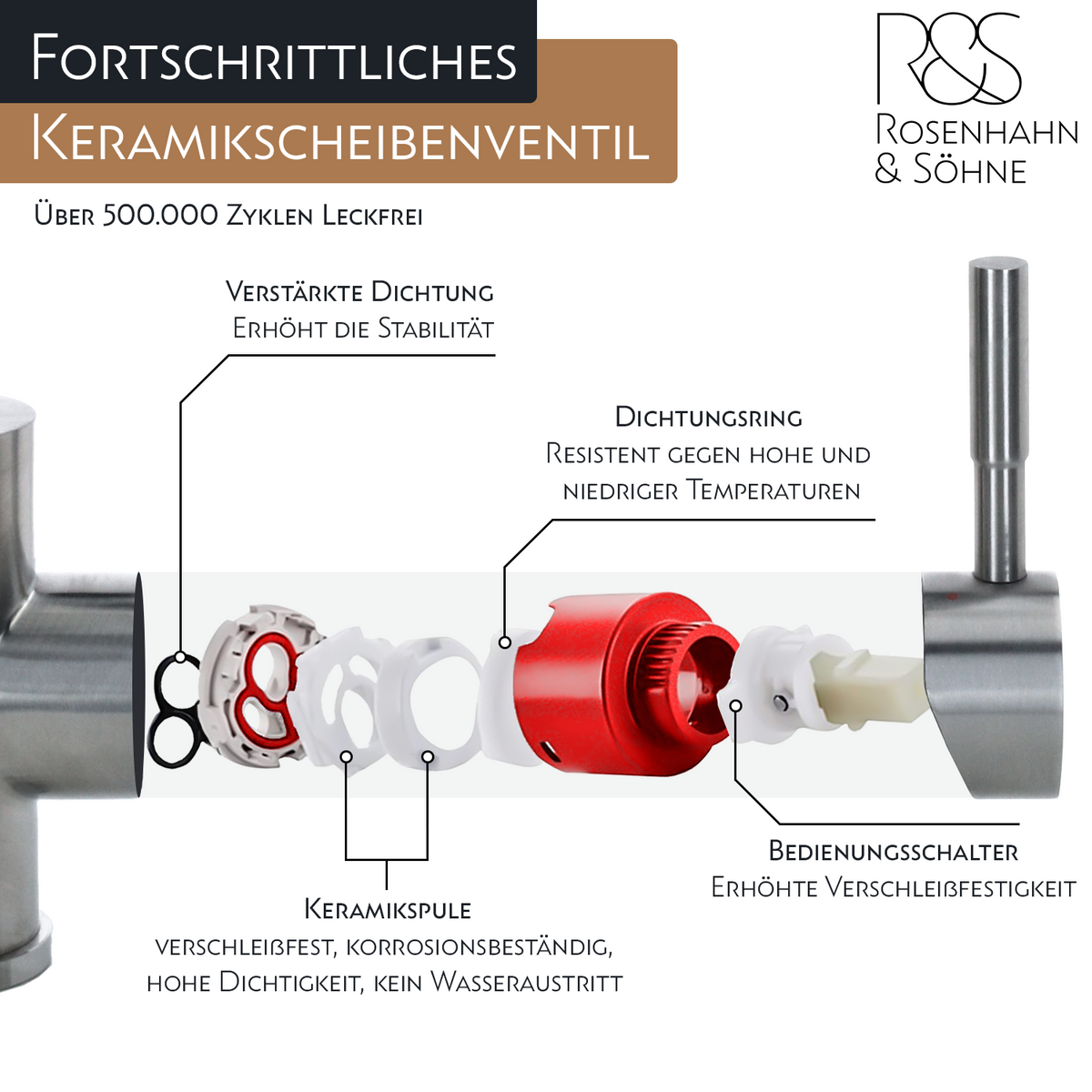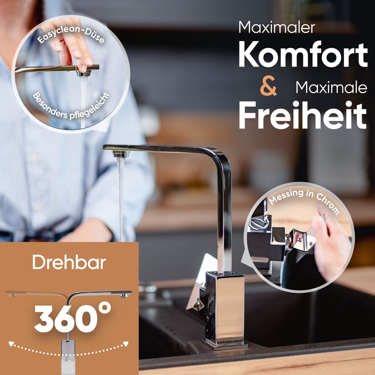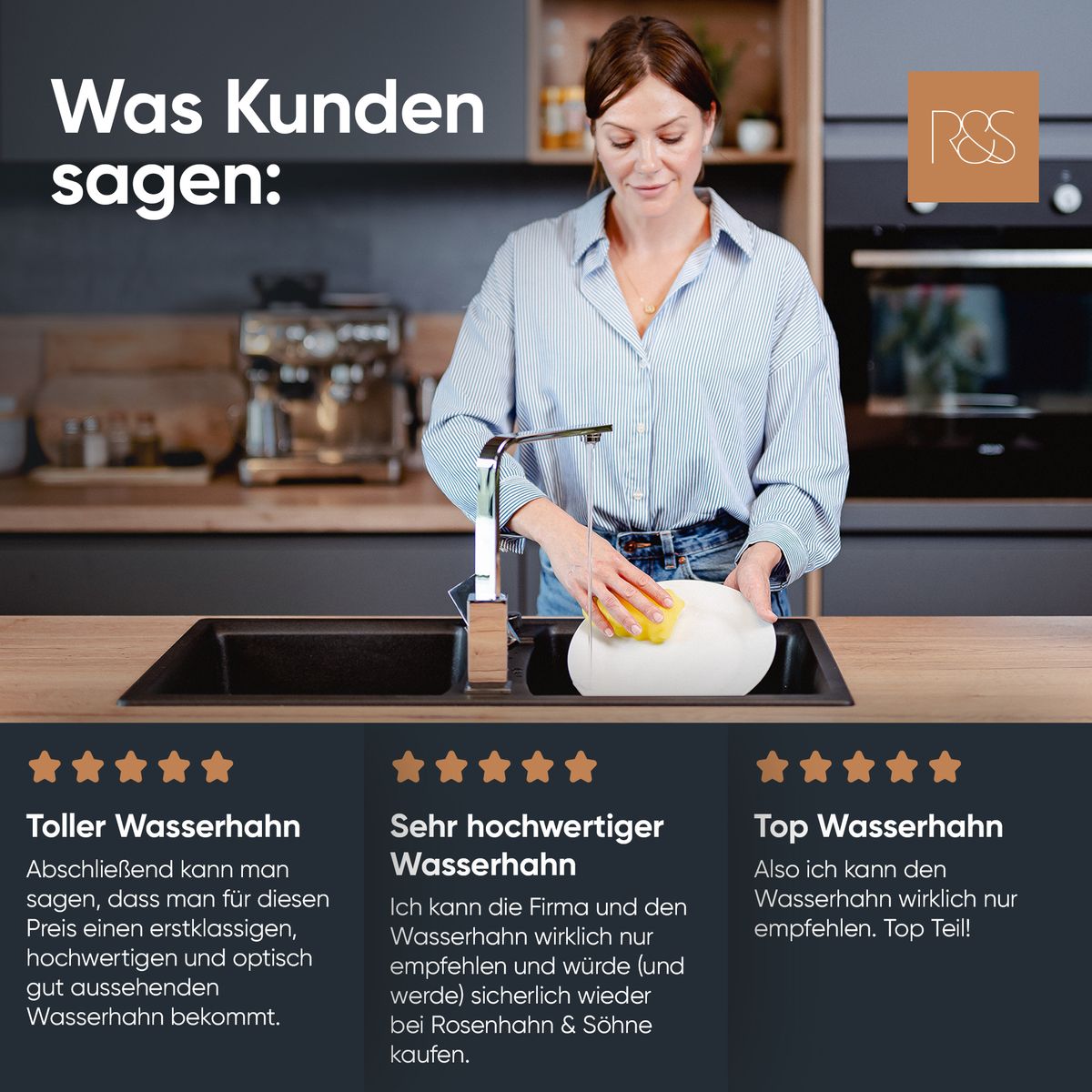 Rosenhahn & Söhne Juist 100 Küchenarmatur 360° Drehbarer Wasserhahn Küche - Armatur Küche [Chrom] - 2-fach verstellbare Spültischarmatur + Anschlussschläuche