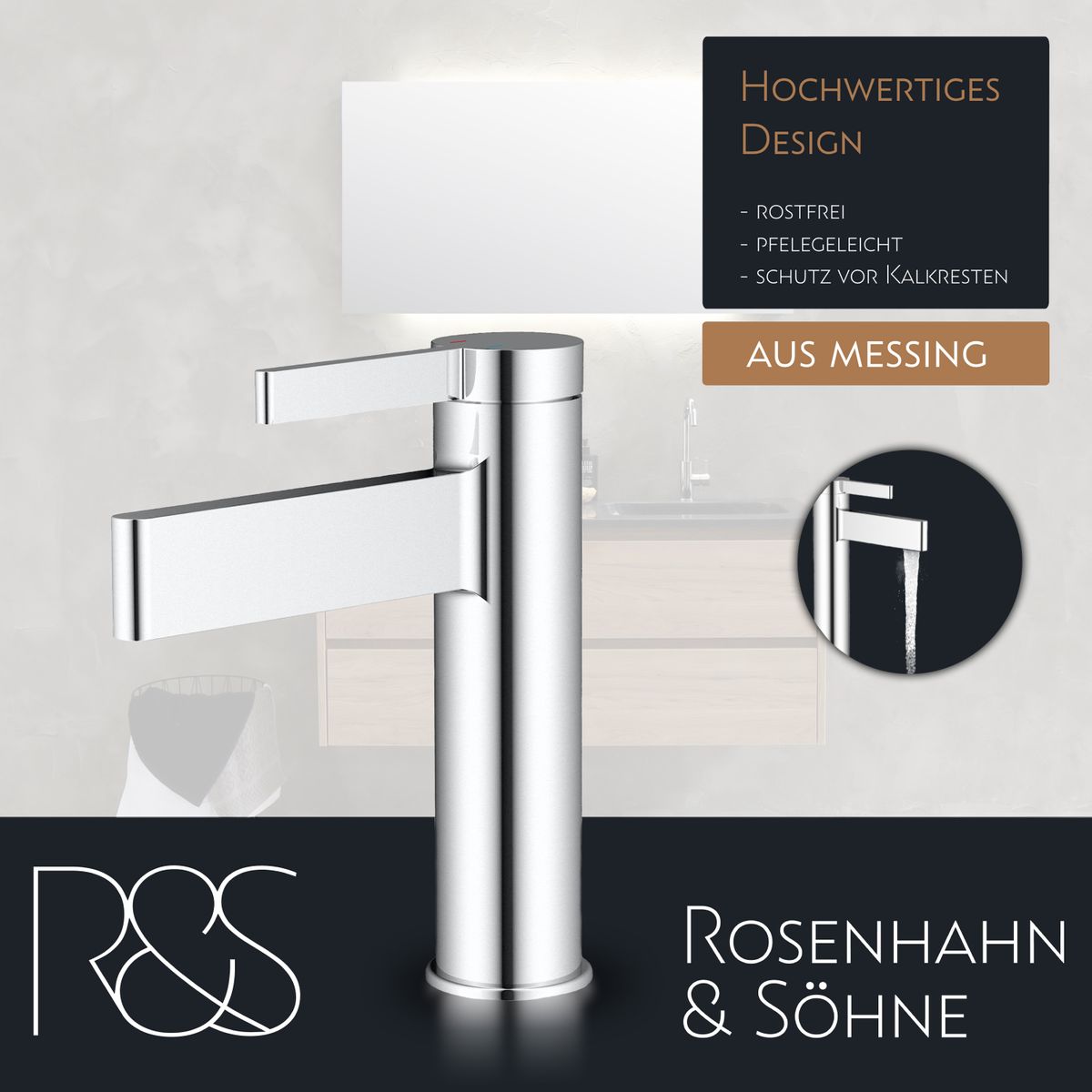 Rosenhahn & Söhne List M Badarmatur Wasserhahn Badezimmer - Armatur Bad [Chrom] - Heiß + Kalt Waschtischarmatur + Anschlussschläuche