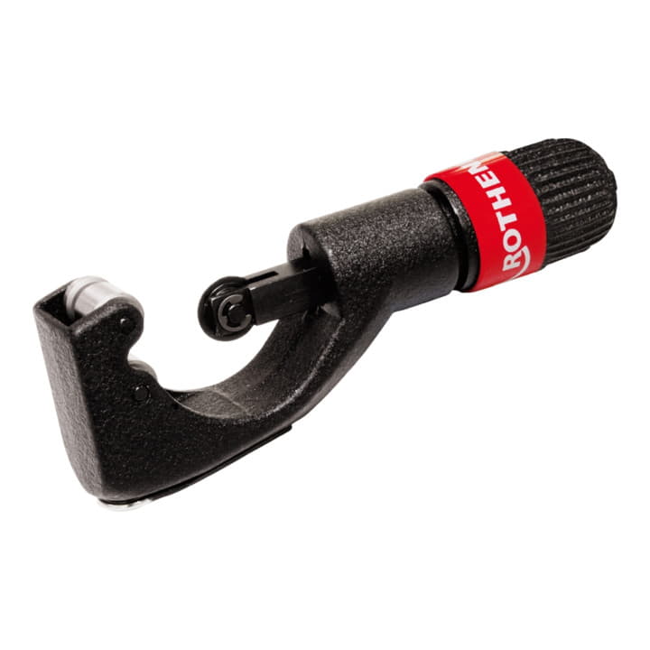 zum Schneiden von Kupfer-, Messing-, Aluminium- und dünnwandigen Stahlrohren · gleichbleibender Arbeitsradius · Alu-Gussausführung · Schutz des Schneidrades durch Rollenstop · ausklappbarer Innenentgrater und Ersatzschneidrad im Griff · geschützte Gewindespindel bietet Schutz vor Verschmutzung und Verklemmen