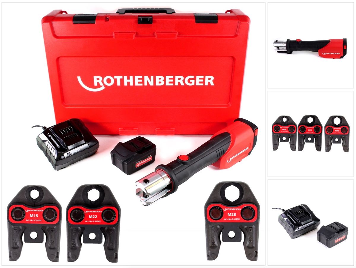 Rothenberger ROMAX 4000 Basic Set CAS Akku Pressmaschine 18 V 34 kN + 1x Akku 4,0 Ah + Ladegerät + 3x Pressbacken M + Koffer ( 1000001927 )