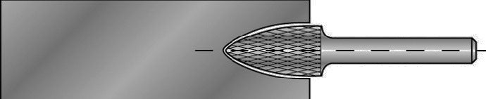 Hartmetall · Form G (SPG nach DIN 8033) · Spitzbogenform · mit Kreuzverzahnung · Schaft-Ø 6 mm (bei Art. 4000 602 865 = 3 mm)