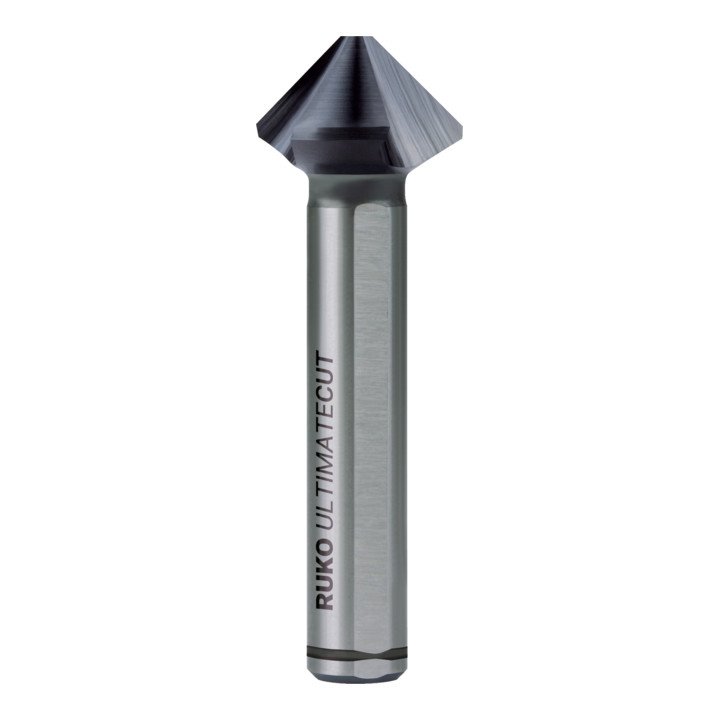Durch die komplett neu entwickelte Schneidengeometrie des ULTIMATECUT von RUKO werden die Axial- sowie Radialkräfte, die beim Senkvorgang auf das Werkzeug einwirken, enorm reduziert. Der speziell entwickelte, variabel verlaufende Hinterschliff sorgt für einen sehr ruhigen Senkvorgang. Dieser erzeugt eine exakte, runde und ratterfreie Oberfläche der Senkung und garantiert dadurch beste Ergebnisse. Speziell entwickelte Spanraumparameter, wie Spanwinkel, Übergangsradius sowie die extra breite Spannut sorgen für eine optimale Span- und Wärmeabfuhr und ermöglichen dadurch eine sehr hohe Verschleißfestigkeit. Zudem wirkt die neue Geometrie Materialverschweißungen entgegen und reduziert die Senkkräfte enorm. Beim Senkvorgang ist nun deutlich weniger Vorschubkraft erforderlich. Materialien können wahlweise mit sehr hohen als auch niedrigen Schnittgeschwindigkeiten bearbeitet werden, ohne dabei an Qualität beim Senkergebnis zu verlieren. Der ULTIMATECUT erreicht beste Performance in fast allen Materialien und Anwendungen.