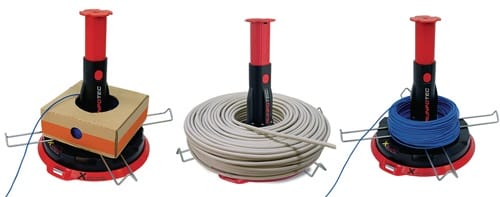 verwendbar in Kombination mit XB 300 und XB 500 · ermöglicht das Abrollen von losen Kabelbünden und Einzeladern · Teleskopmitteldorn ausziehbar bis auf 294 mm, dadurch hohe Kabelbünde oder entsprechende Rohrbünde möglich · Tragfähigkeit mit XB 300 bis 300 kg / mit XB 500 bis 800 kg
