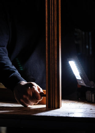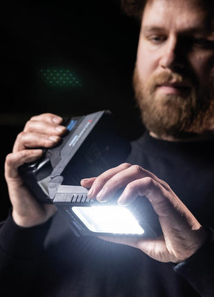 extrem leistungsstarke Arbeitsleuchte · extrem hohen Lichtleistung von bis zu 2500 Lumen · Lichtleistung in 2 Stufen einstellbar, 50 % und 100 % Lieferung ohne Akku/Connector