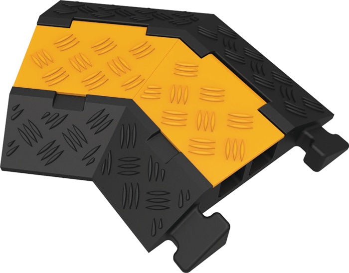 mit zwei Kanälen · zum Schutz von Schläuchen oder Kabeln, die nicht dauerhaft verlegt sind · Abmessung Kabelkanäle H 32 x B 30 mm · keine Befestigung nötig · aus schwarzem vulkanisiertem Vollgummi und rutschhemmende Oberfläche · mit gelben Schutzdeckel und Tragegriff · überfahrbar bis zu einem Achsgewicht von 8 t · Endlosmontage mit Zapfen/Nut-System
